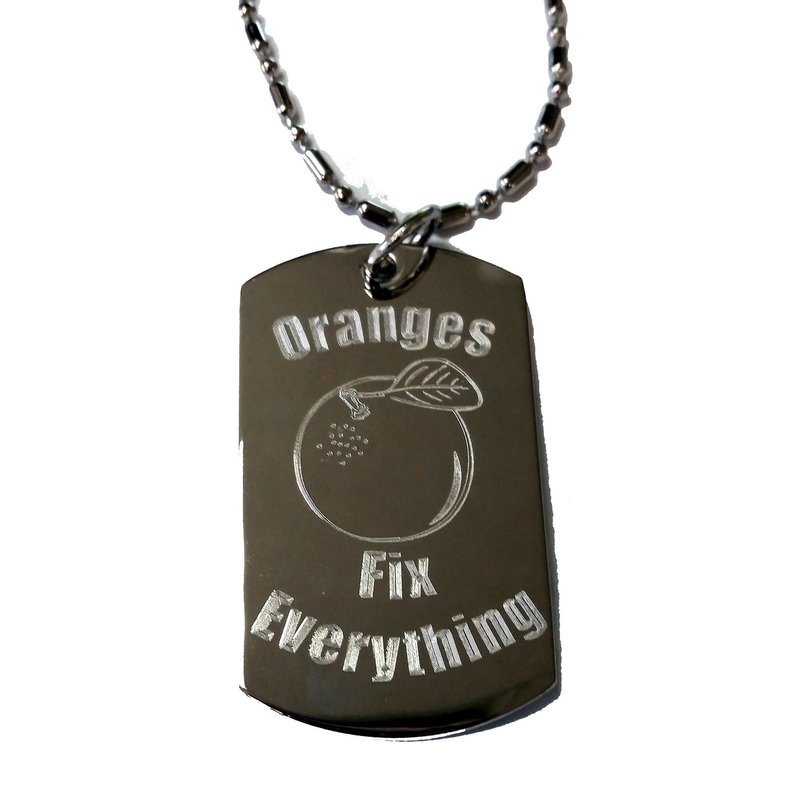 Hat Shark Oranges Fix Everything - Luggage Metal Chain Necklace Military Dog Tag