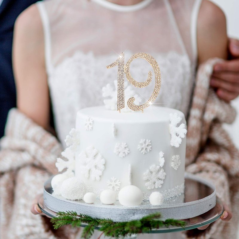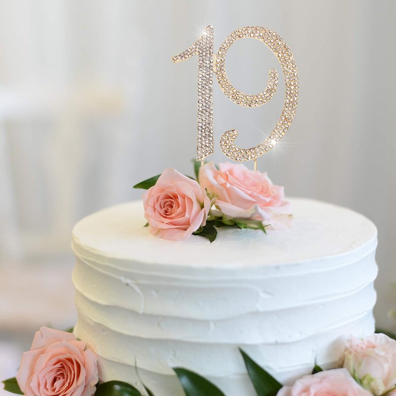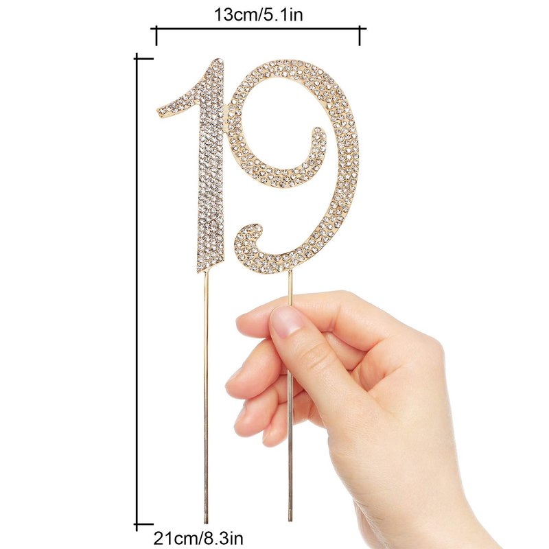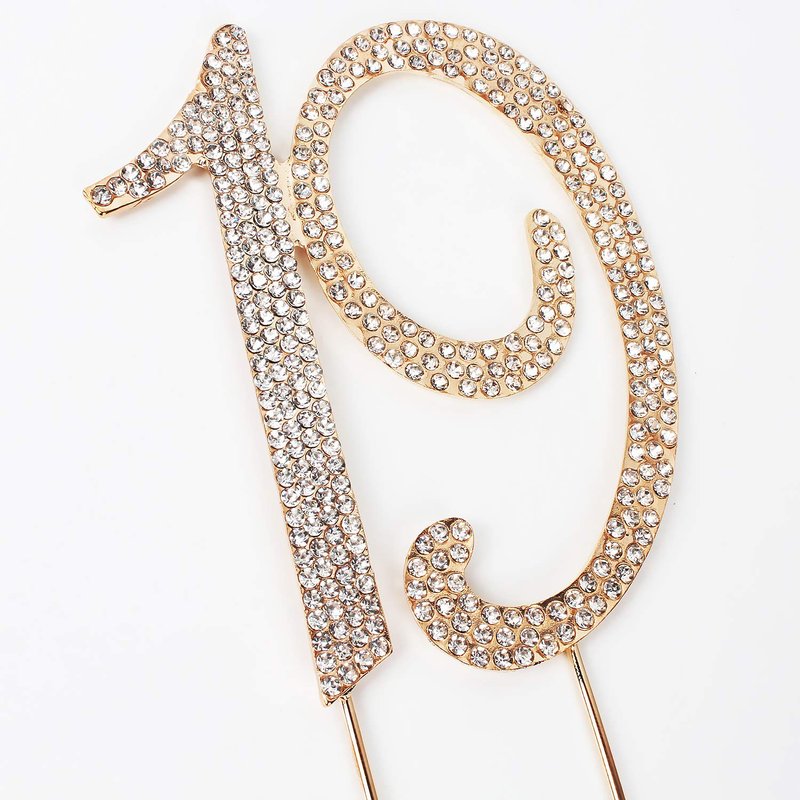 Hatcher lee Bling Crystal 19 Birthday Cake Topper - Best Keepsake | 19th Party Decorations Gold