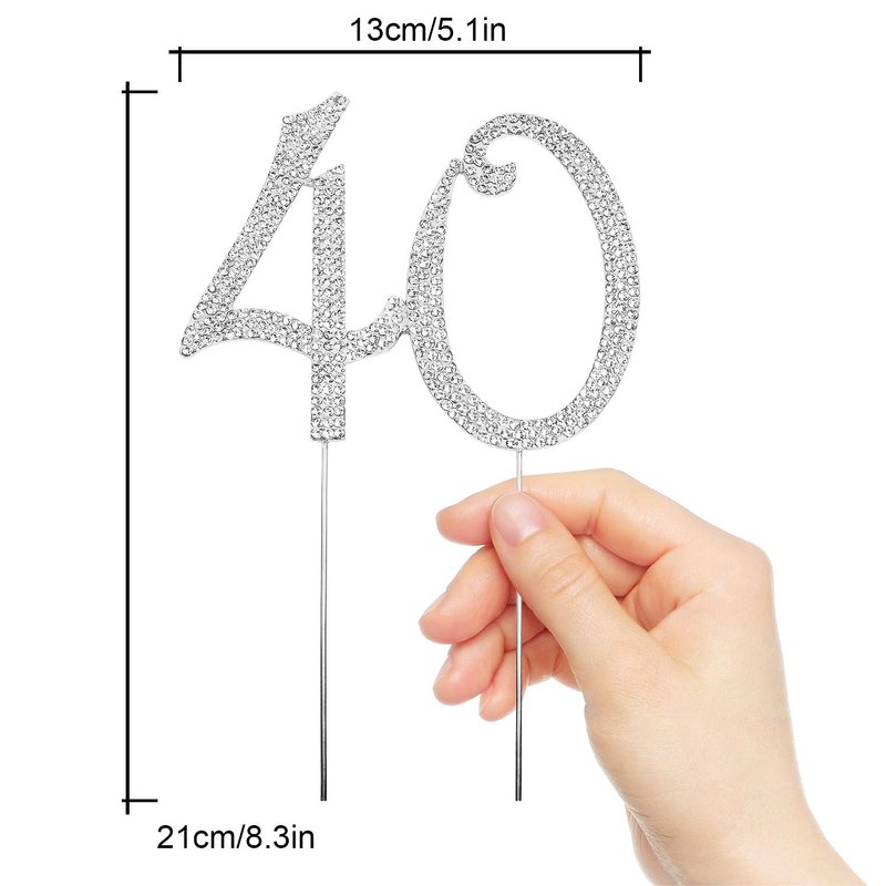 Hatcher lee Bling Crystal 40 Birthday Cake Topper - Best Keepsake | 40th Party Decorations Silver