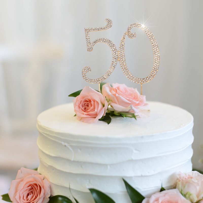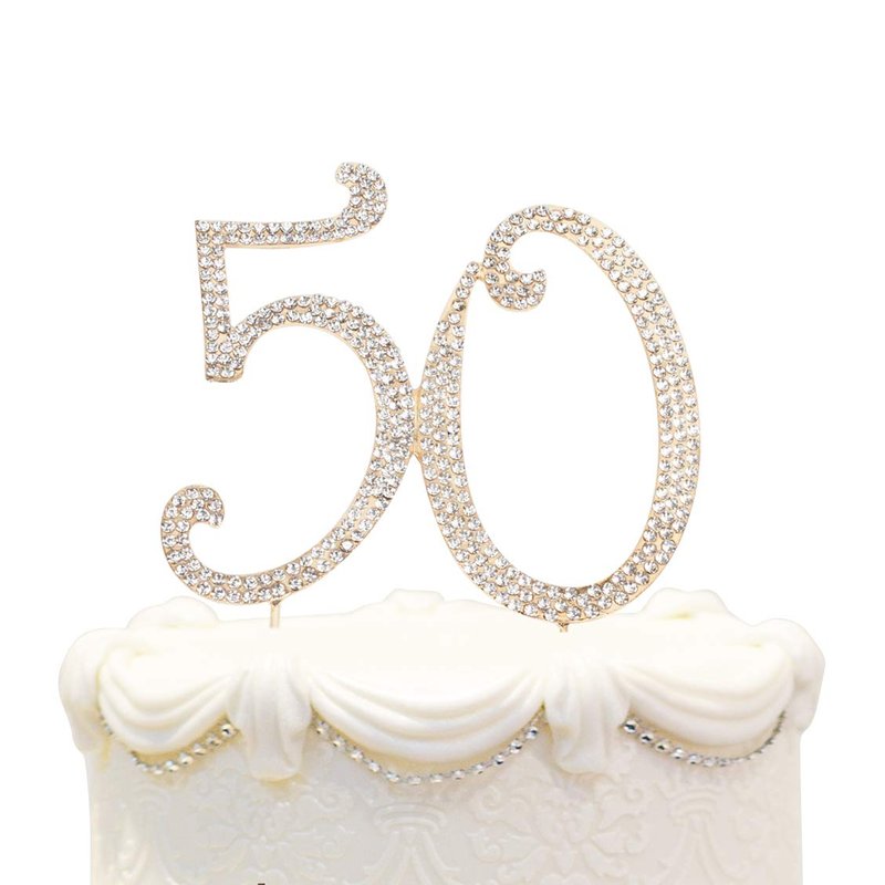 Hatcher lee Bling Crystal 50 Birthday Cake Topper - Best Keepsake | 50th Party Decorations Gold