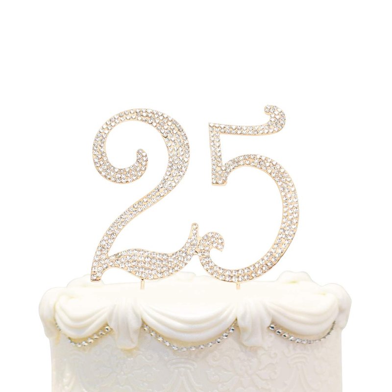 Hatcher lee Bling Crystal Sweet 25 Birthday Cake Topper - Best Keepsake | 25th Party Decorations Gold