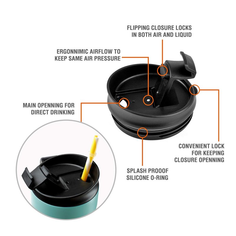 - Leak-proof: The flip cap not only provides a high water flow but also enables you to sip your drink without random splatters and spills. Plus, the lid ensures that your water stays locked inside the bottle and lets you enjoy leak-free portability.