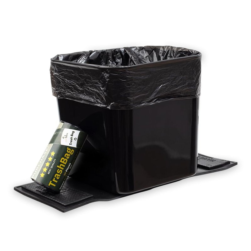 - STAYS IN PLACE - The trash can in your car is built to stay put and won't move even when the road is bumpy. To ensure the garbage can wouldn't move while you were driving even during the hairiest spins, we added heavy-duty anti-slip arms with spikes on the bottom.