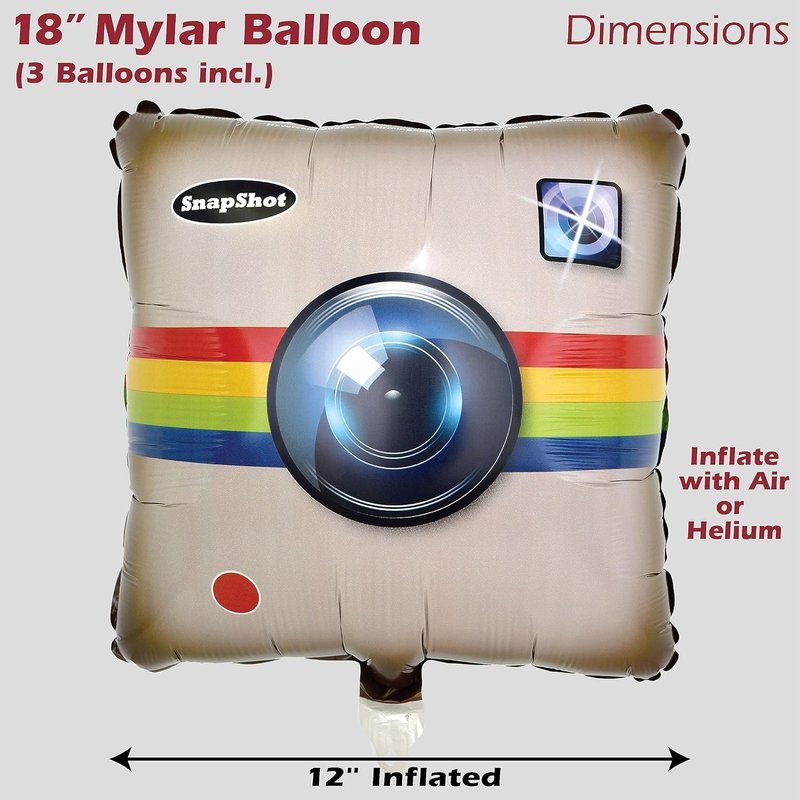 Havercamp Social Media Party Balloons (3 Pcs.); 18" Square Mylar Balloons with Snapshot Logo. Social Media Party Collection