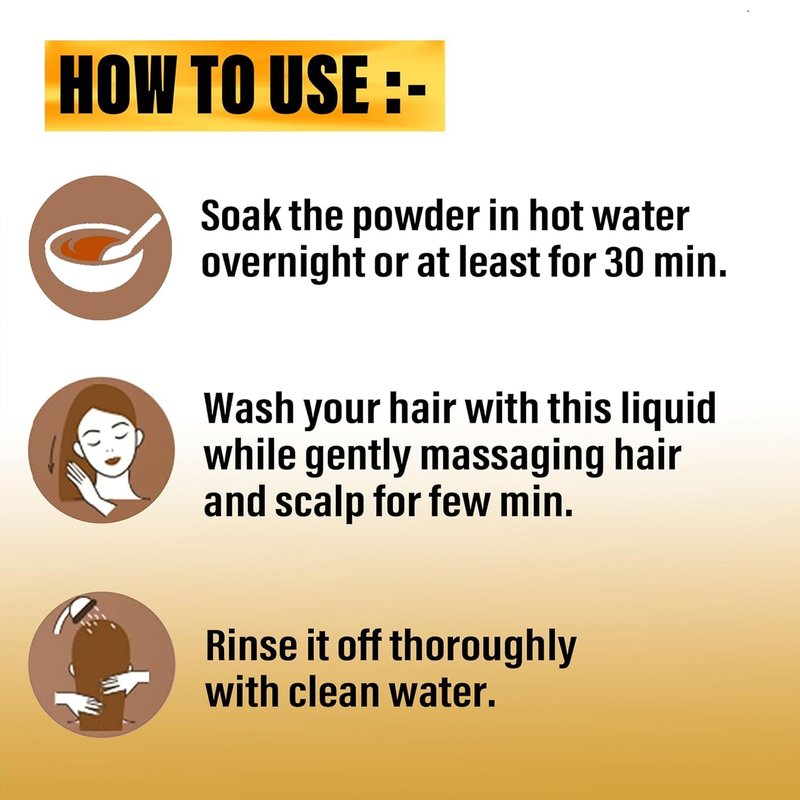 - HOW TO USE INSTRUCTIONS: This shampoo is very esay to use. Just have to take the prescribed amount in a bowl and mix it into water and use. For an even better result use our totally natural hair oil.