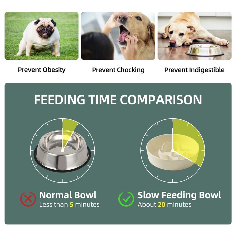 - SLOW DOWN EATING UP TO 10X - Fun Feeder dog bowls feature meal-lengthening ridges to help slow down your dog’s eating time by 10X! Anti-Chocking , Unique slow feeding design , promotes healthy slow eating, helping prevent obesity, bloat, regurgitation and overeating.
