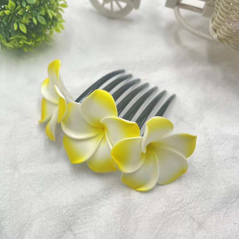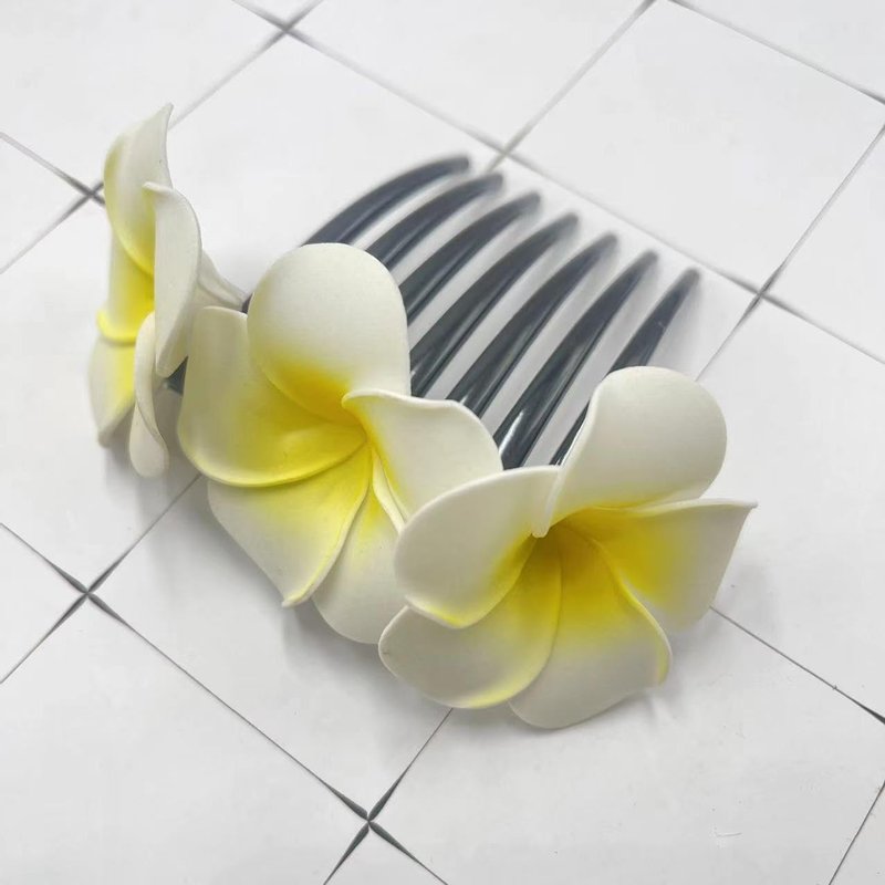 Hawaiian Plumeria Flower Hair Combs for Women Hawaiian Flower Hair Comb Hawaiian Headpiece Hair Accessories for Women Hawaiian Floral Hairpins Hawaiian Flowers Hair Clips