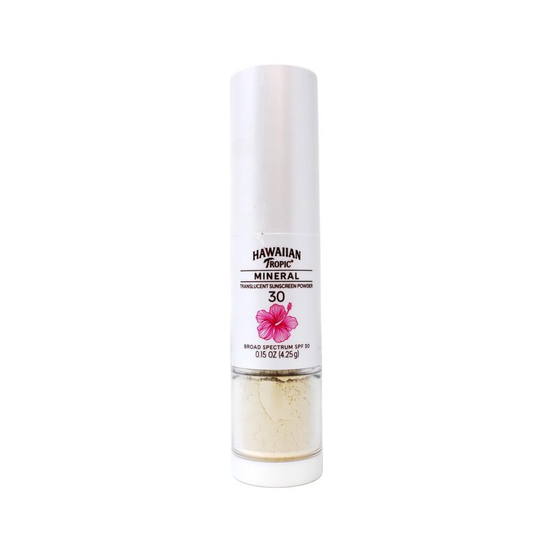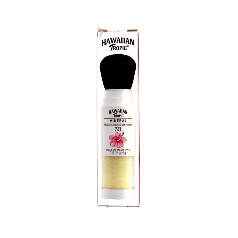 Hawaiian Tropic Mineral Translucent Sunscreen Powder Brush is a handy and convenient new way to apply and re-apply your SPF throughout the day, so you can get the daily protection you need while enhancing your look. It's your ultimate skin-loving SPF BFF! Made with naturally sourced sea minerals to absorb excess oil on your face, this portable, easy-to-use brush format works seamlessly into your daily beauty routine and can be used by itself, under makeup, or even after your makeup is on to help set it. The translucent formula blends into most skin tones to provide a beautiful matte finish, while the 100% mineral actives offer broad spectrum UVA/UVB protection without chemical filters. Plus, our sunscreen brush's convenient size makes it a perfect travel sunscreen so you can reapply throughout the day