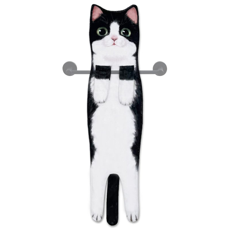 - Cat Hand Towel: This fun kitten towel perfectly blends the cute shape of a kitten with a hand towel. The kitten's paw has a snap design, so it can be hung securely on the towel rack. When hanging from the towel rack, the kitten hand towel can remain upright, maintaining its fun and cute appearance. After washing your hands, you won’t be able to resist wiping them on this adorable kitten hand towel. Stroking this soft towel not only dries your hands, it also can help improve your mood.