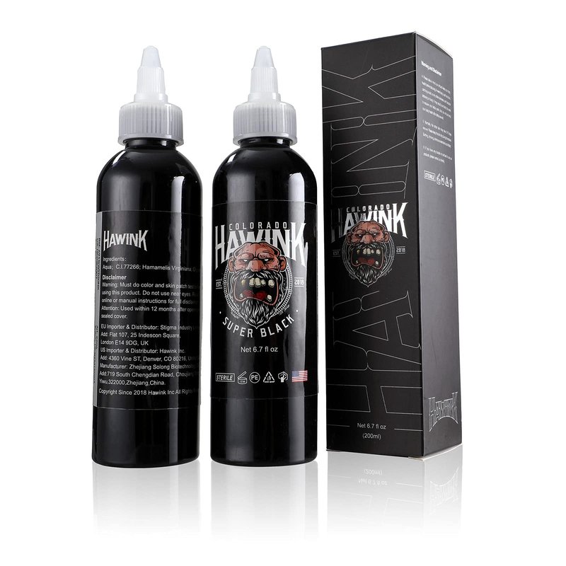 Hawink Tattoo Ink 6.7oz (200ml) Vegan-Friendly USA Standard Pigment Super Black TI963-6.7OZ-S