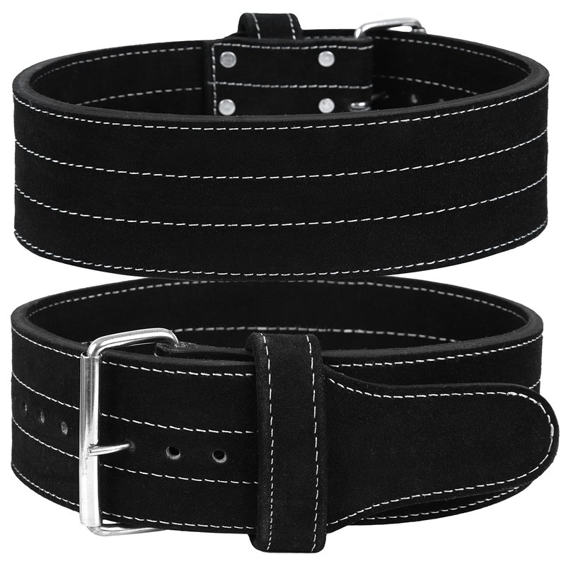 - BUILT TO LAST LONG - Stiff, durable leather for great support; Heavy stitching with black suede lining on inside and out prevents the single prong powerlifting belt from sliding on the torso mid-lift. Perfect to give added support for heavy lifts which require you to brace your core during powerlfting