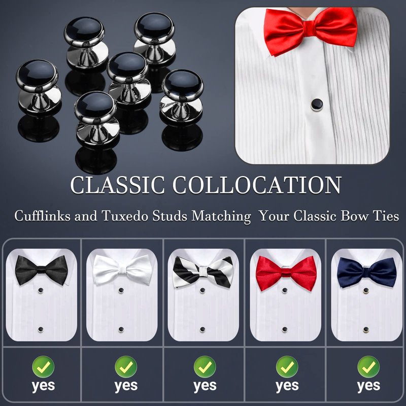 - MAN'S MUST-HAVE JEWELRY SET - From business attire to tuxedo fits,black stud and cufflinks set can adapt to all styles.
