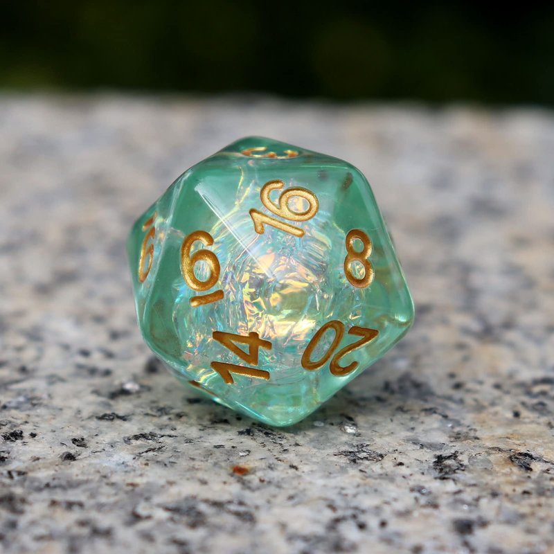 - Pretty Green Sparkling Dice: The iridescent mylar inclusion gives out beautiful reflections when turned around. A must have for sparkle dice lovers.