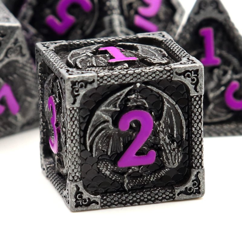 Haxtec Metal DND Dice Set Black Purple Dragon P...