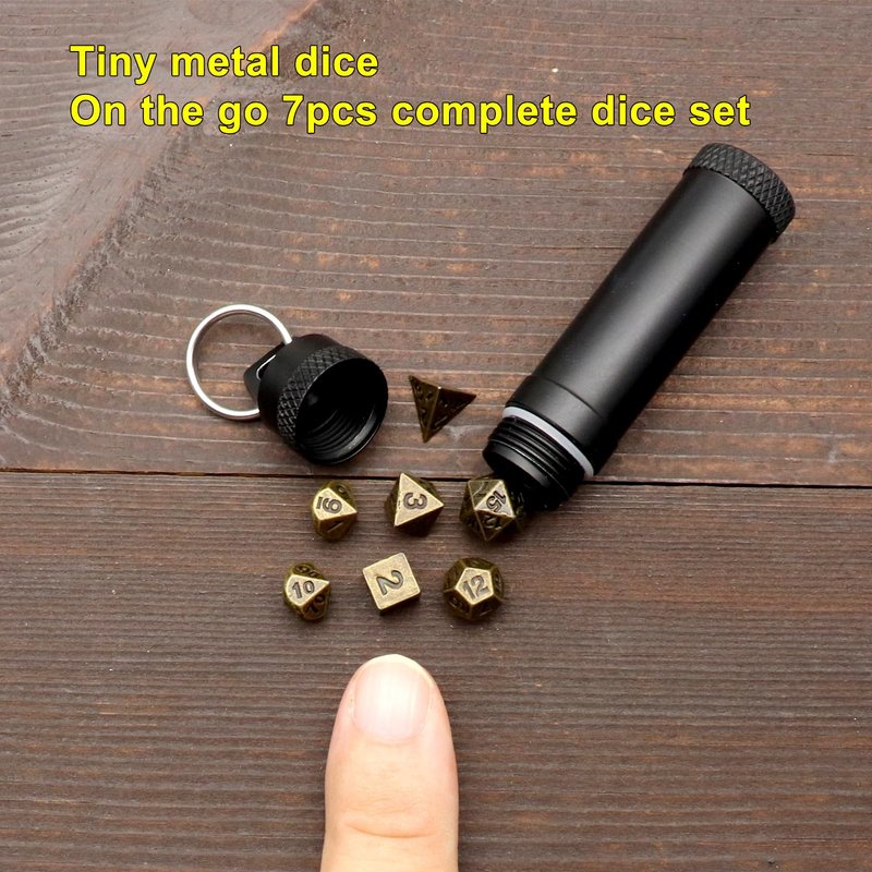 Haxtec Mini Dice Set Tiny Small Metal DND Dice Set with Dice Case Portable Antique Bronze Metal Dice Set for Keychain