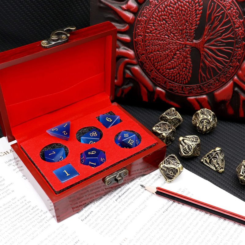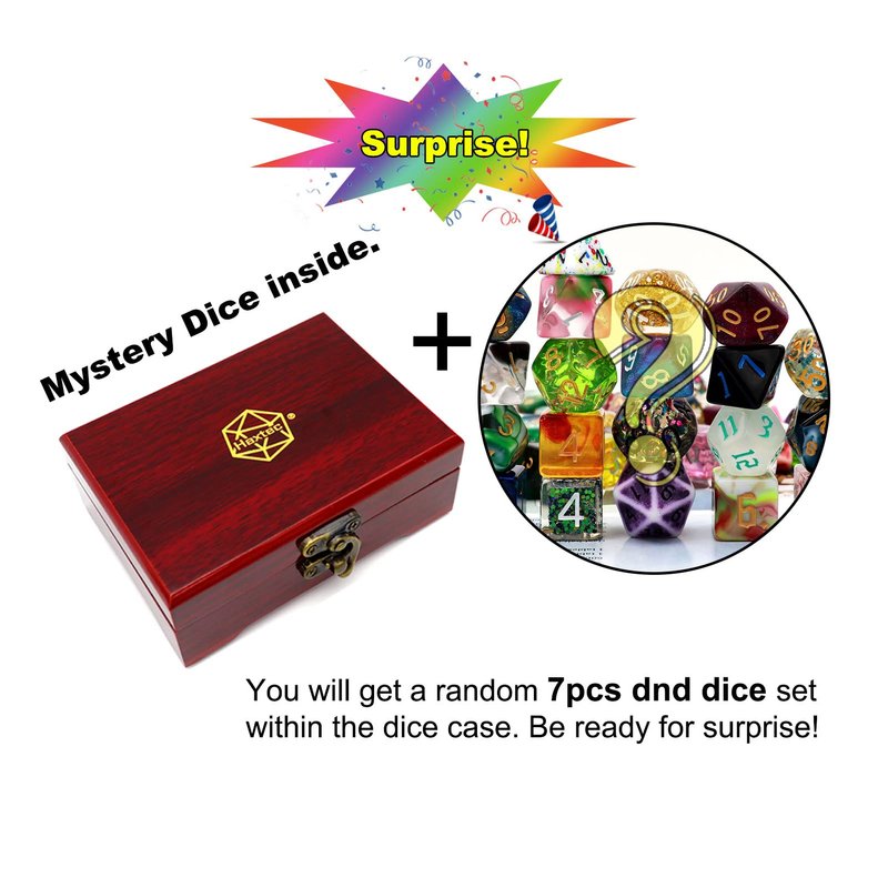 - Mystery dnd dice set with exquisite wood dice box. Dice sets inside come randomly from more than 300 hundreds sets of haxtec dice. Some are expensive exclusive unique resin dice. Same price, extra dice display case!
