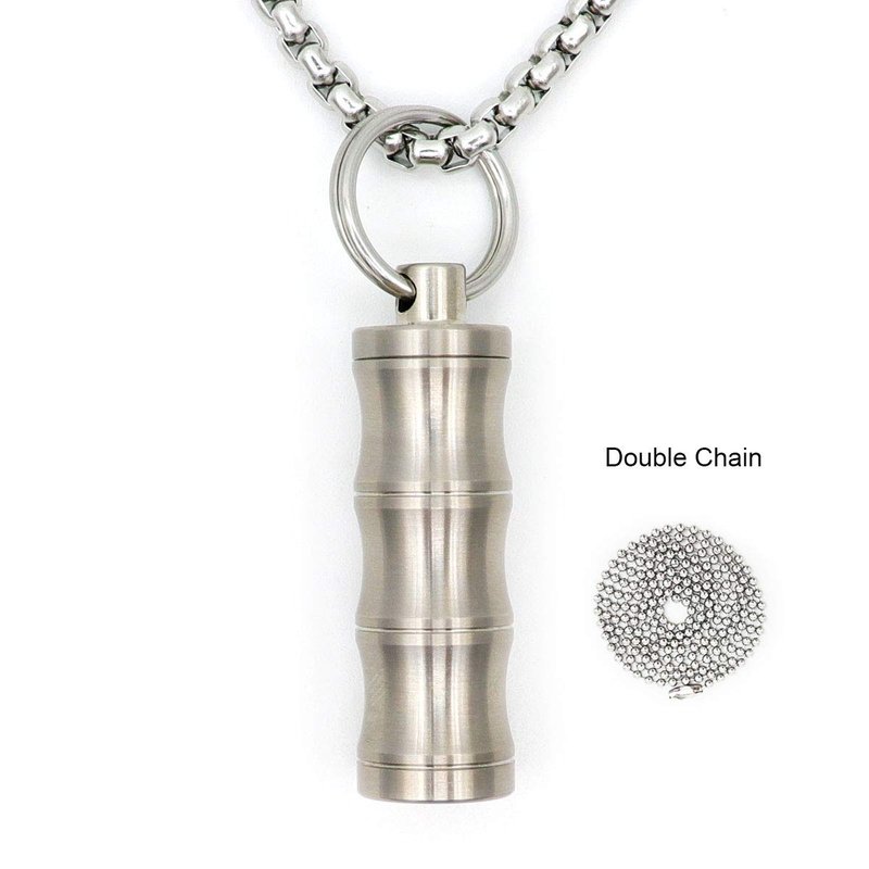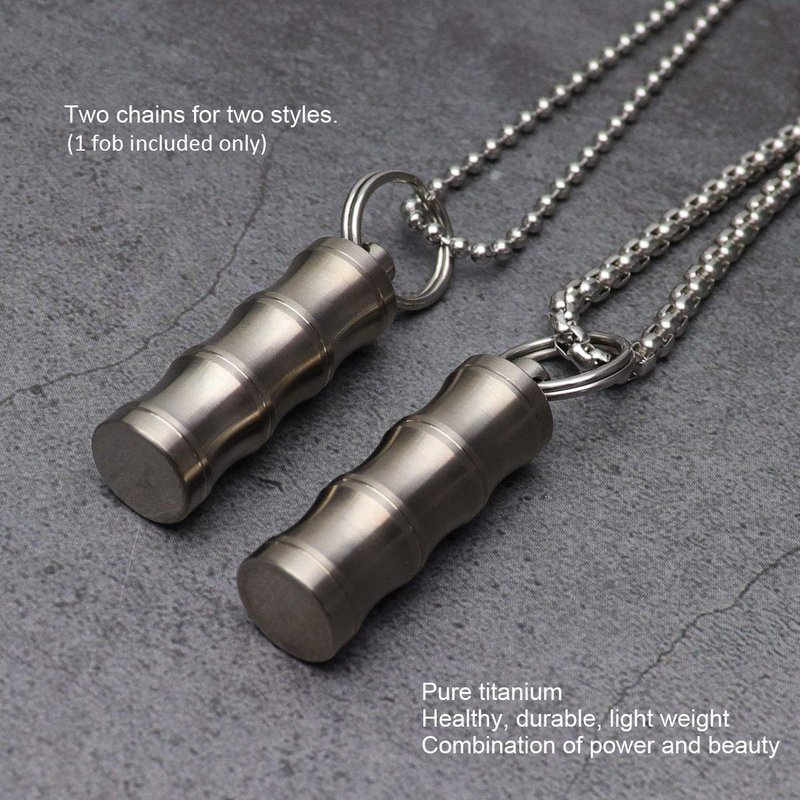 - Bamboo Shape Pendant Necklace Pill Fob: Fob size: 1.46x0.47". Weight: 0.46oz. Chain Length: 24'' and 27.6". Precise CNC machined body with anti-slip groove makes it fits firm in your hand.