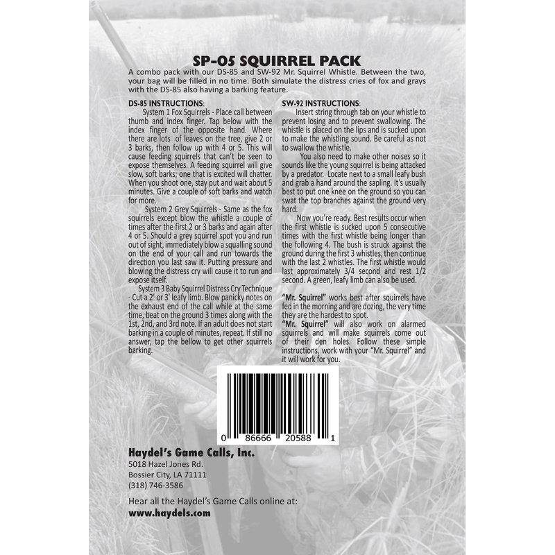 - Combo pack with DS-85 and SW-92 Mr. Squirrel Whistle