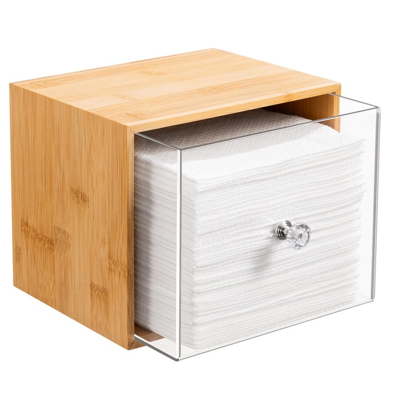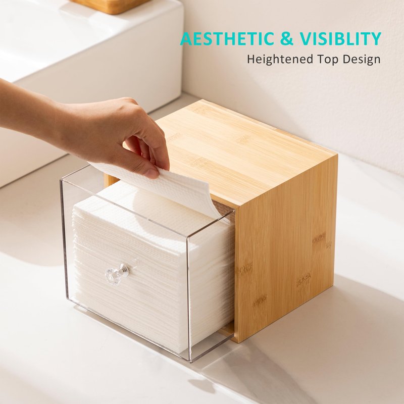 - Elegant Storage & Convenient Use:Elevate your vanity with the HBlife Bamboo Disposable Face Towel Holder. Its sleek bamboo and acrylic design not only organizes your disposable towels but also adds a touch of elegance to your space. Say goodbye to clutter and enjoy a tidy, stylish vanity.