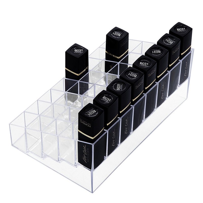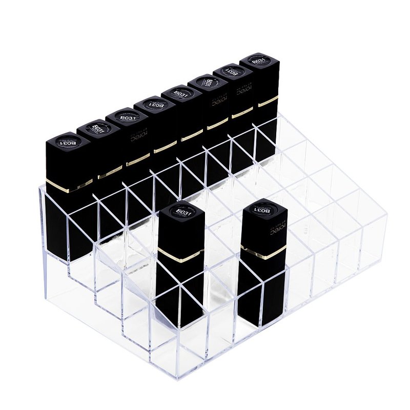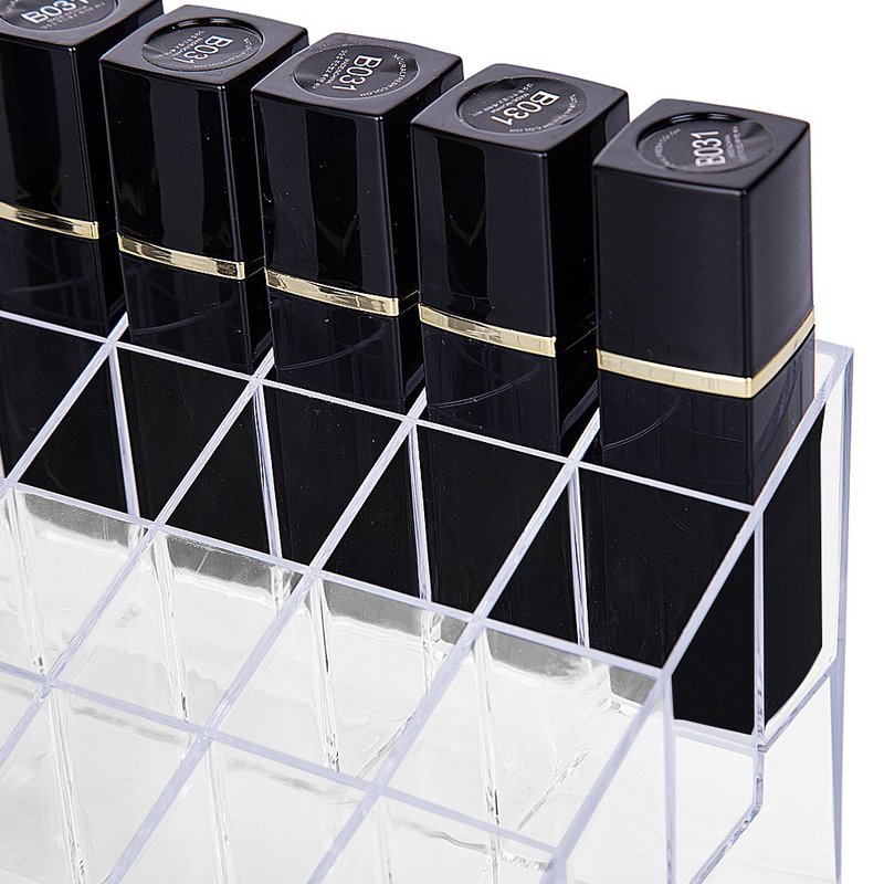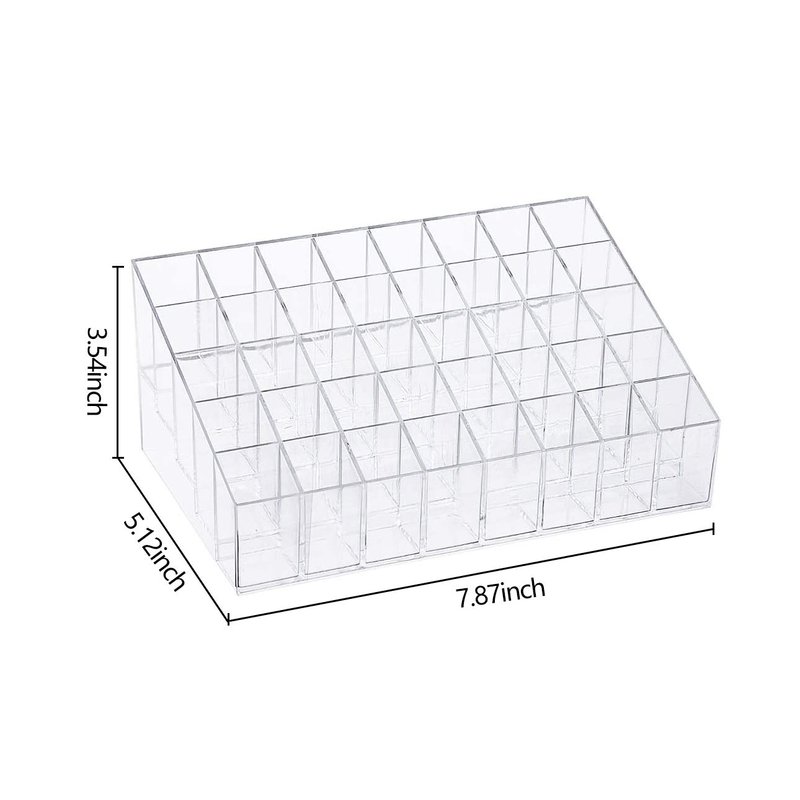 - SIZE: 7.87x5.12x3.54inch(20x13x9cm), Holds up to 40 lipsticks, each slot measuring at about 1"; Color: Clear