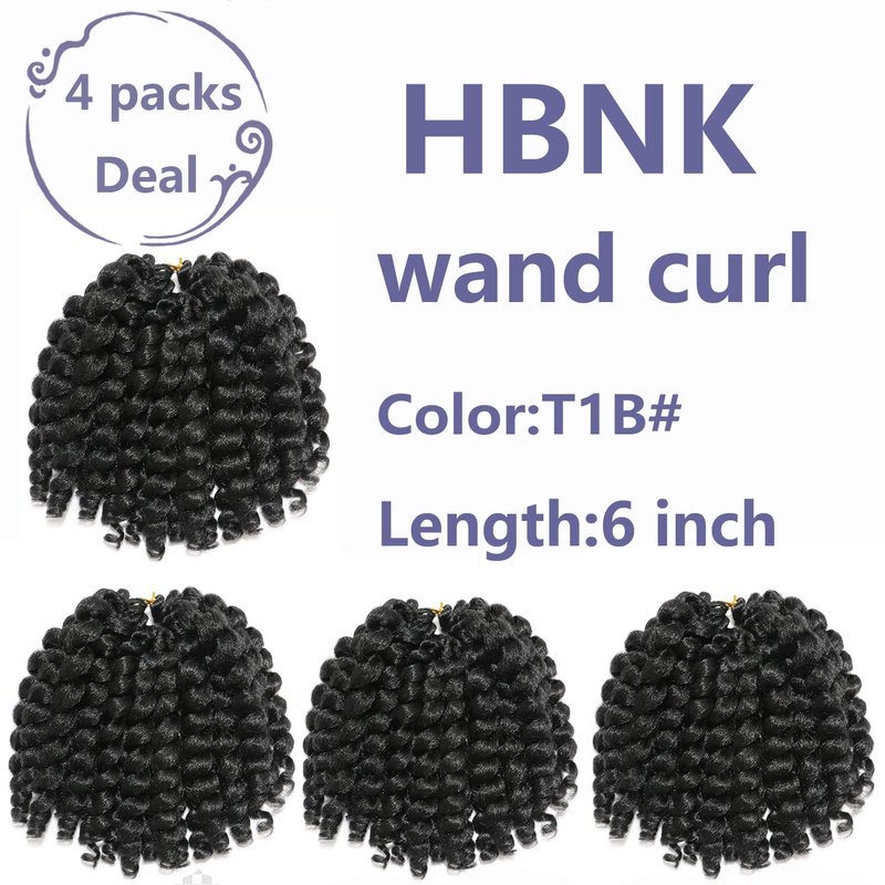 HBNK Jamaican Bounce Crochet Hair-4 Packs 6 Inch Wand Curl Crochet Hair For Black Women (6 Inch (Pack of 4), 1B)