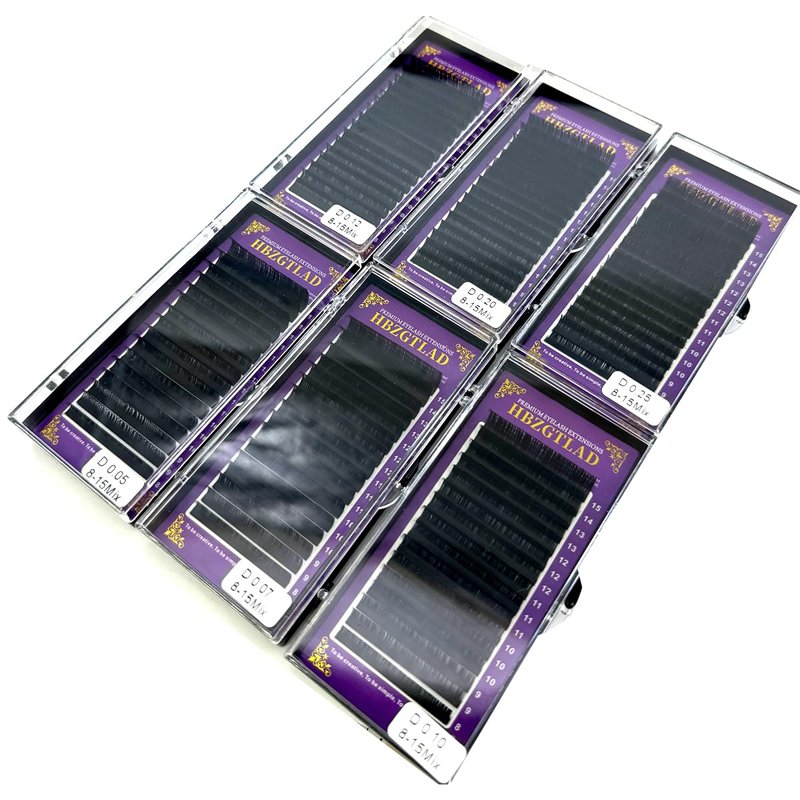 - Thickness: 0.05/0.07/0.10/0.12/0.20. Curl: D curl. Length: 8-15mm mixed length. 16 rows per pallet.