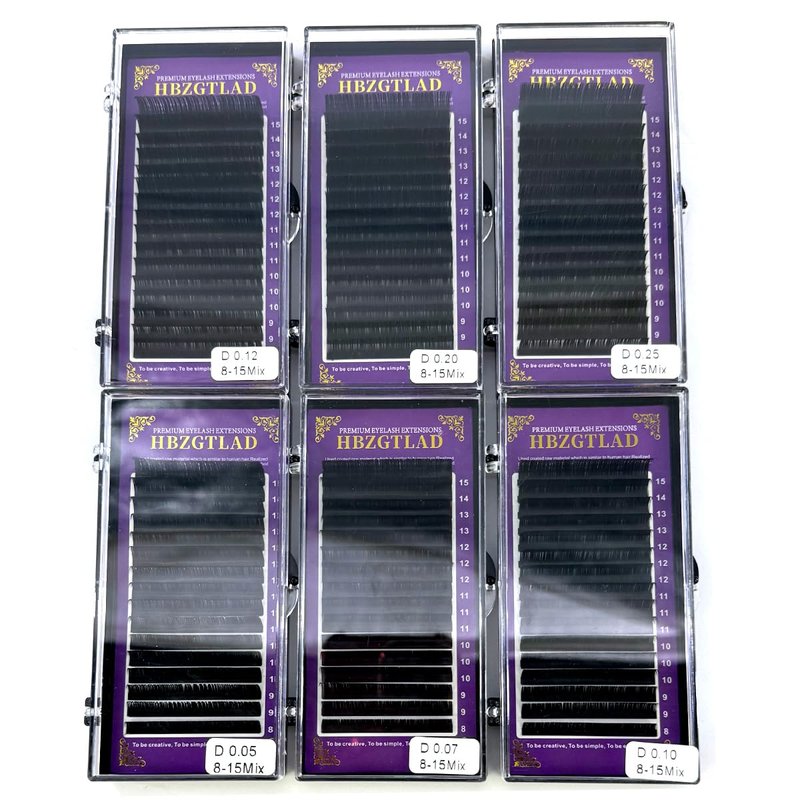 - Thickness: 0.05/0.07/0.10/0.12/0.20. Curl: D curl. Length: 8-15mm mixed length. 16 rows per pallet.