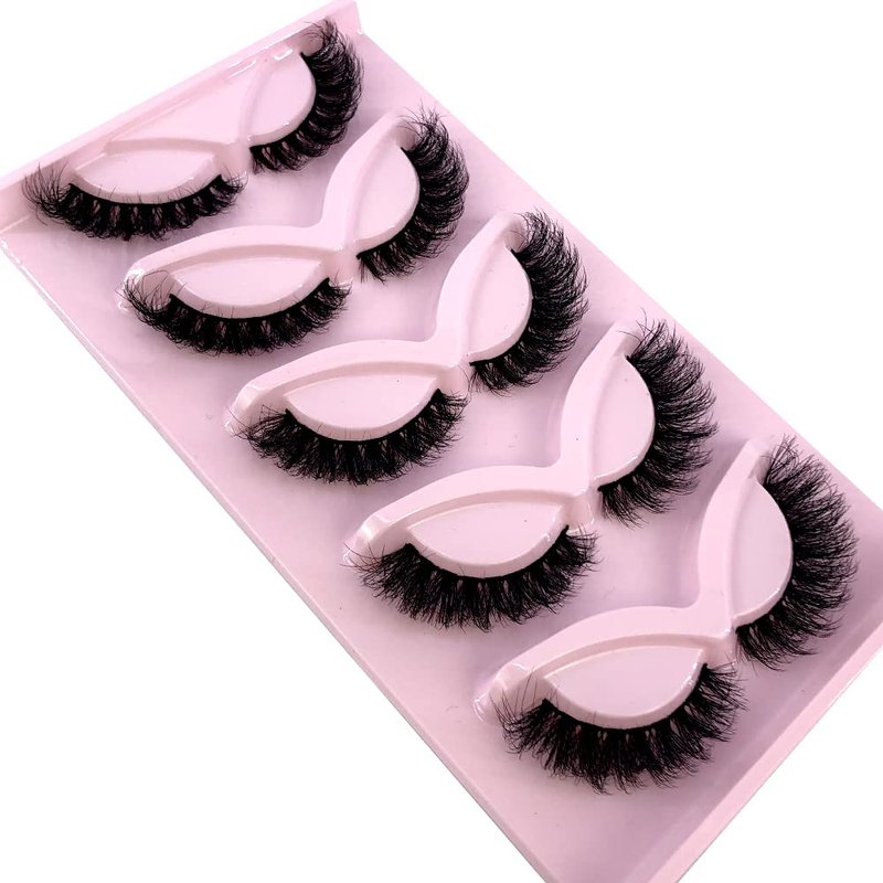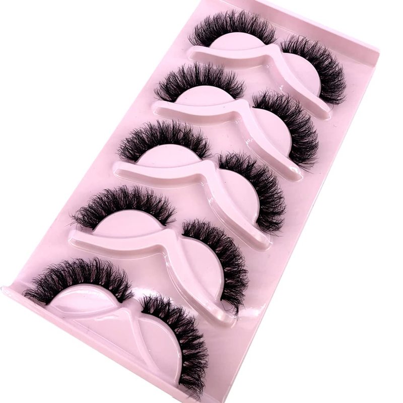 HBZGTLAD NEW 5 Pairs Fluffy Natural Lashes Makeup Handmade Reusable Short 8mm-22mm Wispy Strip Faux Mink False Lashes (RU-1)
