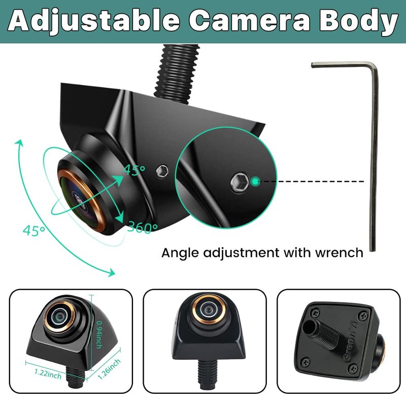 - Built-in Rotating Metal Camera Body---Unlike old-fashioned car cameras which can only adjust the viewing angle by adding gaskets, you can rotate GreenYi pickup rear camera’s lens part to find a best viewing angle with the help of the mini wrench, never need to worry about too high or too low image shown on the monitor. Mini design, solid shinning metal housing, shockproof, longer service life.