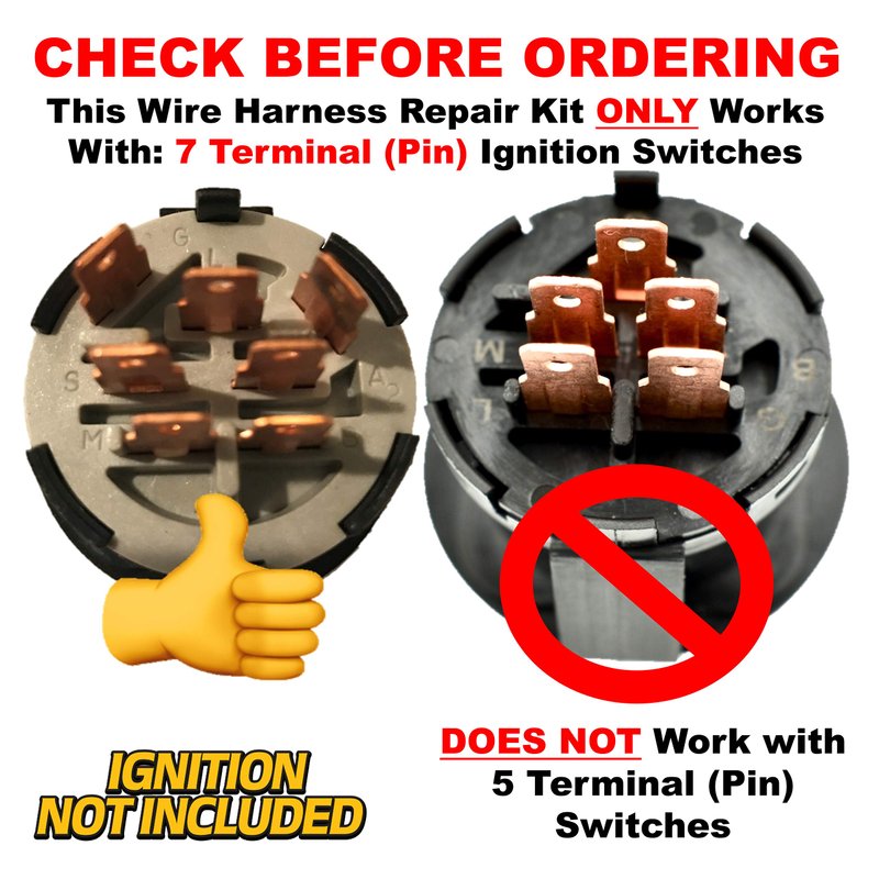 HD Switch Ignition Switch Plug & Wire Harness Repair Kit. This Kit Works with All Delta 7 Terminal, 4 Position Plastic Ignition Switches. Please look at the images to ensure this is the correct kit before ordering. This Kit includes Everything You Will Need To Completely Rebuild The Ignition Switch Wire Harness Connection.