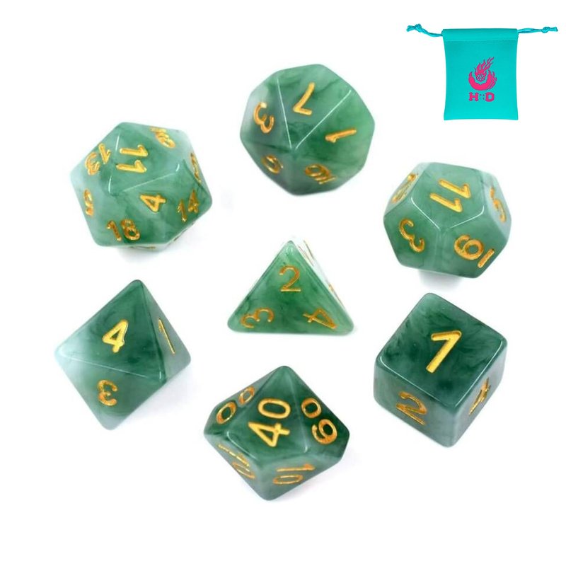 HDdais Polyhedral DND Dice Sets, 7-Die Green D&D Dice for Dungeons and Dragons Pathfinder RPG MTG Table Gaming Dice,Jade Dice (Green)