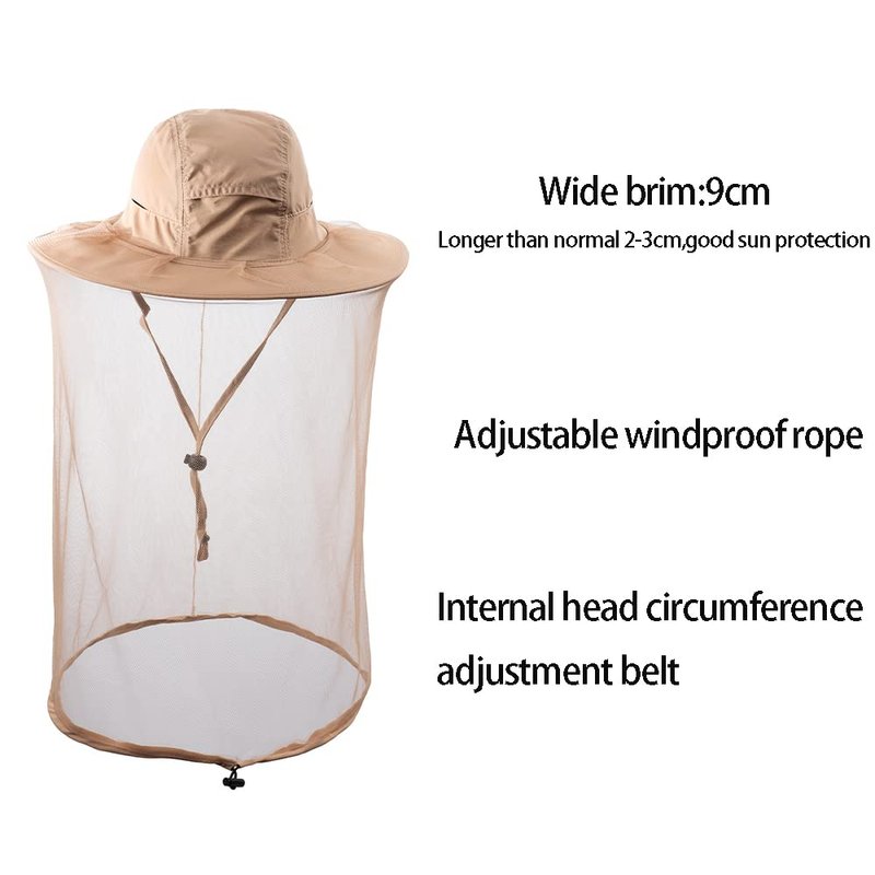 Head Netting Mosquito Net Hat Beekeeper Bee Veil Hat Bug Face Cover Netted Fishing Safari Hats Dog Grooming Women Men Khaki