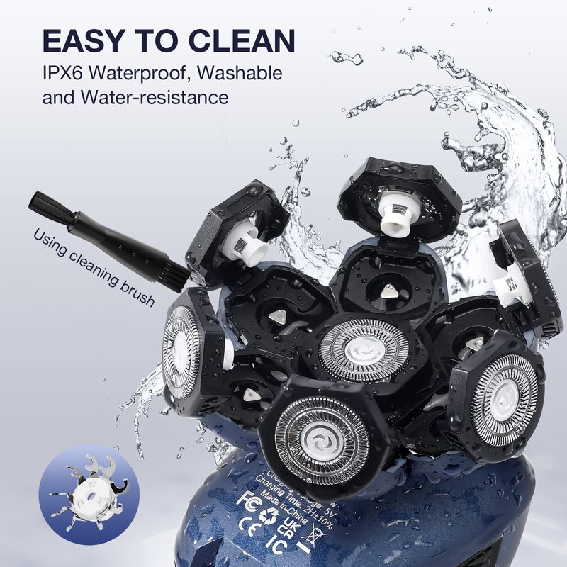 - 【Waterproof and Wet & Dry】If you want a cleaner shaving experience, we recommend that you use shaving foam to soften the stubble before using our razor. The whole body of the shavers for men is IPX6 waterproof, offered you a comfortable dry shave or a refreshing wet shave with shaving foam. You can use the small brush provided for cleaning, which is easy to operate and easy to clean. This versatile shaving kit is a great gift for your husband or boyfriend.