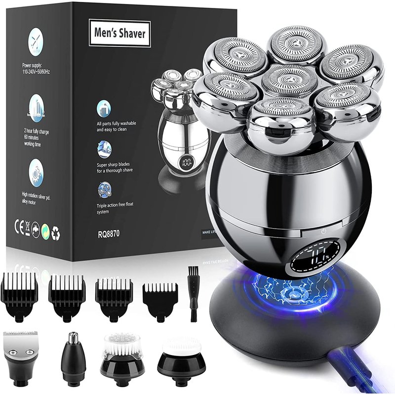 Head Shavers for Bald Men, Wjiang 6 in 1 Electric Razor Mens Shaver Wet Dry Cordless Electric Skull Shavers 7D Floating Rechargeable Bald Head Shaver Back Shaver Head Shaver for Men Father's Day gifts