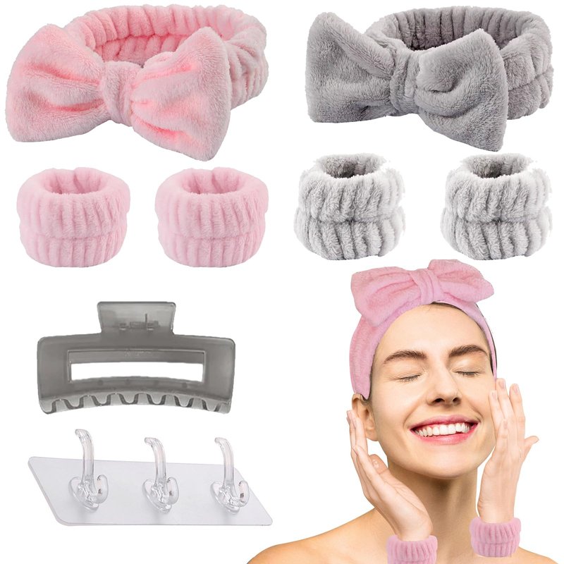 Headband for Washing Face Set, Makeup Headband, Skincare Headbands, SPA Headband Wristband for Washing Face, Hooks for Wristbands Hairbands, Hair Clips, Arm Bands for Washing Face