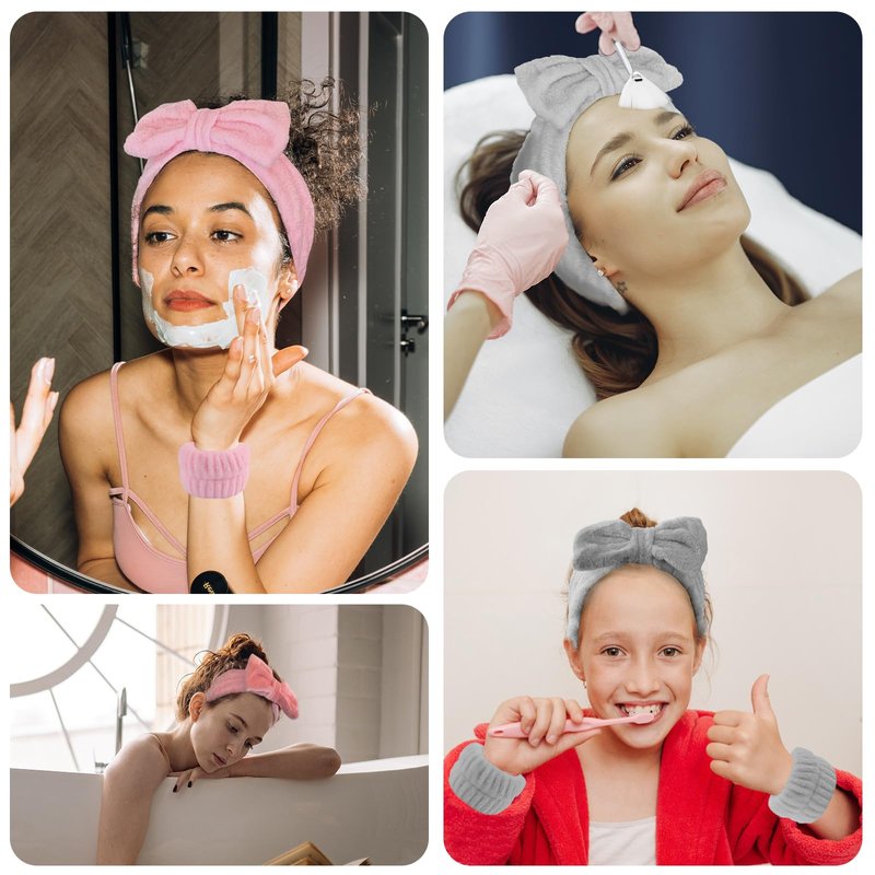 - ✿【Spa Headband and Wristband Set】The set includes 2 headbands for washing, 4 wristbands (2 pairs), a hairpin and 1 sticky hook. After use, hang the headband and wristbands on the hooks for easy drying.