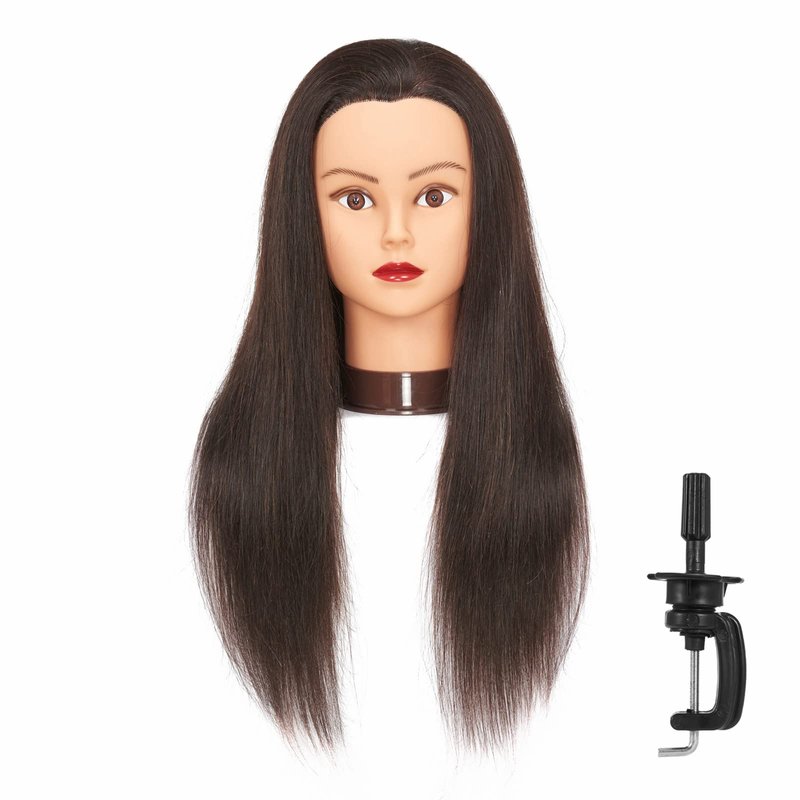 Headfix 24"-26" Hair Mannequin Head 100% Human Hair Hairdresser Practice Styling Training Head Cosmetology Manikin Doll Head With Clamp (6F1919LB0218H)