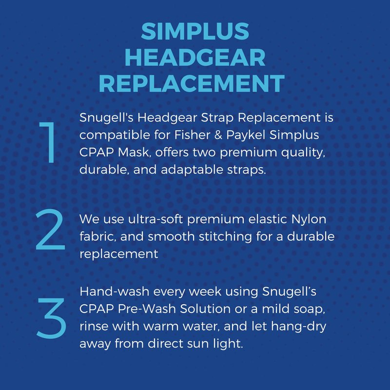 - MAXIMUM ADAPTABILITY: Compatible with Fisher & Paykel Simplus CPAP Mask, Snugell’s Headgear Strap Replacement Set includes two premium quality straps designed to provide maximum durability and adaptability.
