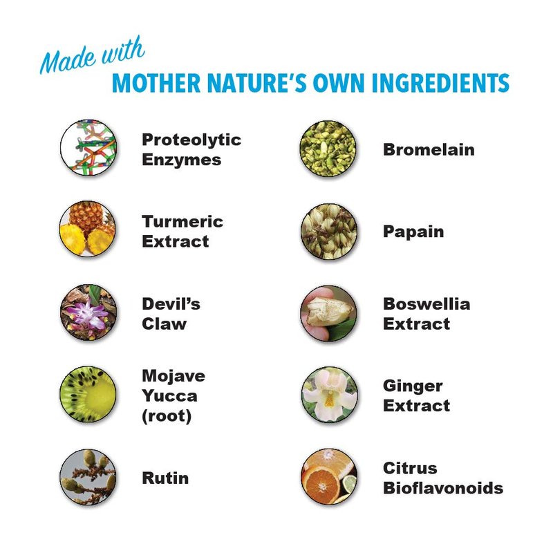- Proteolytic Systemic Enzyme Joint Support System - Heal-n-Soothe contains a blend of Proteolytic Enzymes, Turmeric Extract, Bromelain, Boswellia Extract, Papain, Rutin, Mojave Yucca Root, Devil's Claw, Citrus Bioflavonoids, Alpha Lipoic Acid and Ginger supplement