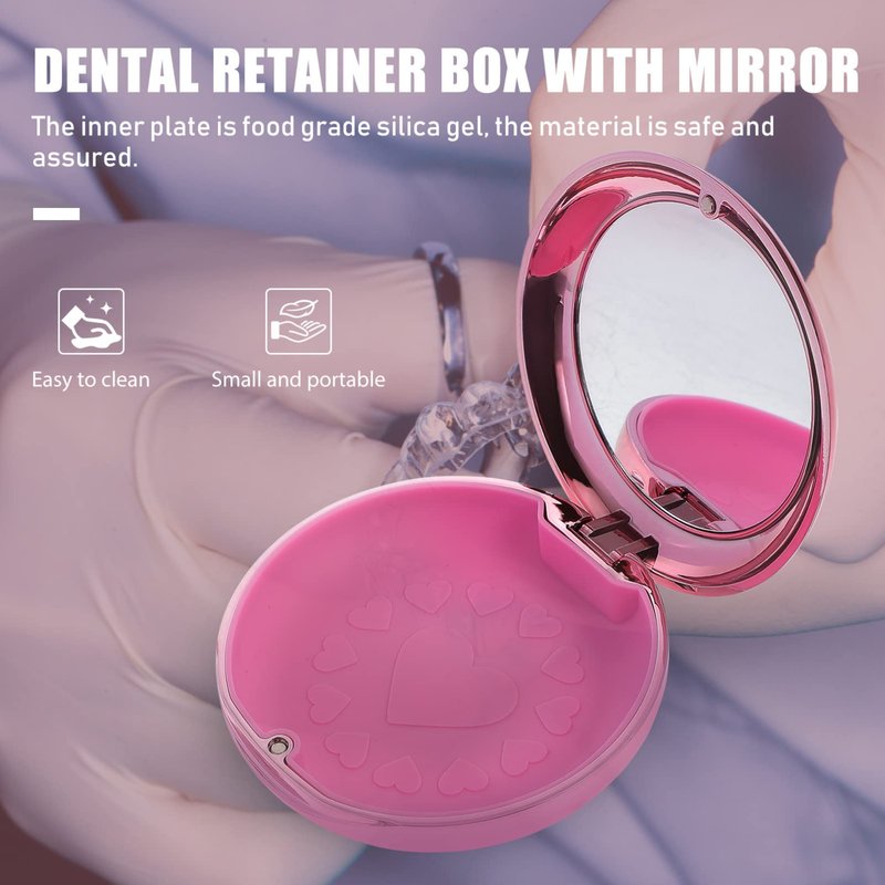 Description Portable Dental Retainer Box Dental Braces Case Practical Invisible Denture Case Dental Mouth Guard Case with Mirror Oral Care Box Features- Material: ABS+ PC- Size: About 8. 70' X8. 70' X2. 70cm/ 3. 42' X3. 42' X1. 06inch- Color: Rose gold. Package Including 1 x retainer storage box