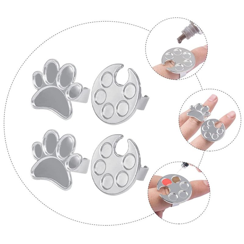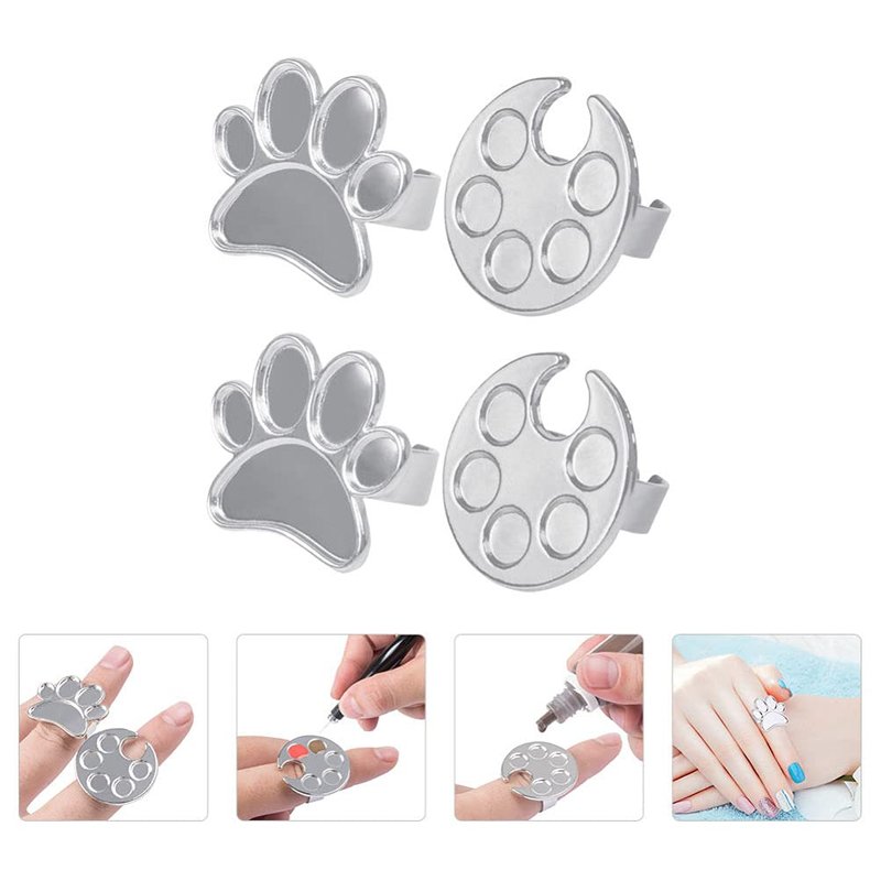 HEALLILY 4pcs Nail Art Palette Stainless Steel Makeup Mixing Palette Ring Mini Manicure Palette Wearable Metal Nail Art Polish Holder Paint Palette Finger Rings Nail Art Tools