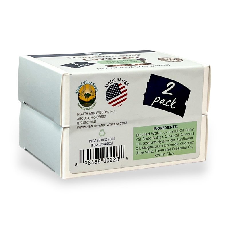 Health and Wisdom Magnesium Soap Bar - Magnesium Body Wash, All Natural Soap Bar, Magnesium Bar Soap, Magnesium Shower, Magnesium Oil, Bath Soap Bars, Lavender Soap Bars - Lavender, 4 Oz (Pack of 2)