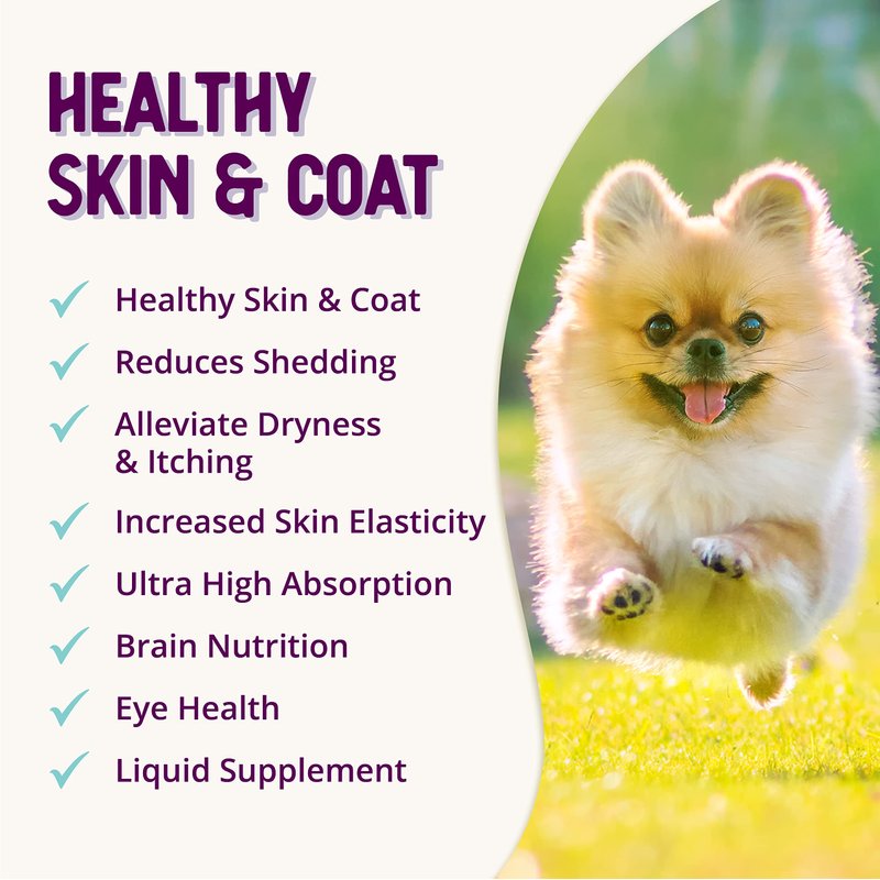 - Alleviates Dryness & Itching: Just a pump or two over your dog’s food each day helps to soothe dry, itchy skin, providing comfort and relief for your pet.