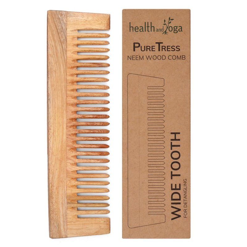 The PureTress series of wooden combs are inspired by the vitality and goodness of Neem and its positive effect on the skin, unlike bamboo or plastic combs. A wonderful wooden wide tooth comb for women, the Puretress combs are even used as birth combs for labor besides being a wood comb for women hair. Being a thick comb, this large tooth comb should be a part of every labor and delivery essentials kit, even hospital essentials for labor and delivery. As a hair comb, it serves straight hair as well as a curly hair comb. Wide tooth combs for women are a much needed requirement for wet hair and curls or knotty hair. A wide tooth wooden comb is especially useful as it is non static and a more effective detangler without breaking hair. The PureTress wide tooth comb wood serves the dual purpose of detangler as well as fine scalp massage to help reduce dandruff and stimulate overall scalp and hair health. Unlike other wooden combs like the bamboo comb, Neem wood is imbued with skin health boosting properties, which makes it an essential part of your Hair Kit. A versatile part of every hair care kit, this is also useful as a mens comb. Men grooming generally entails greater contact with skin. Whether as a beard comb for men or a grooming men comb, the need is for a material which does not cause the skin to break into rash or allergy while being a wide teeth comb to prevent unnecessary tugs and pulling of hair. The PureTress Neem wood comb is the perfect answer due to the inherent skin friendly properties of neem.