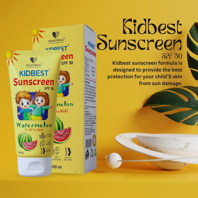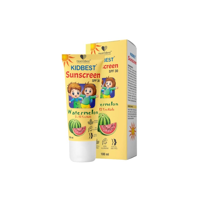 HealthBest Kids Watermelon Cooling Sunscreen SPF-30 Boosts Vitamin D Absorption PA+++ Prevents Tanning Cream for 3-13 Years Kids | Each 100ml (Pack of 1)