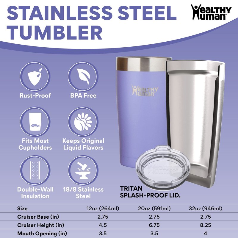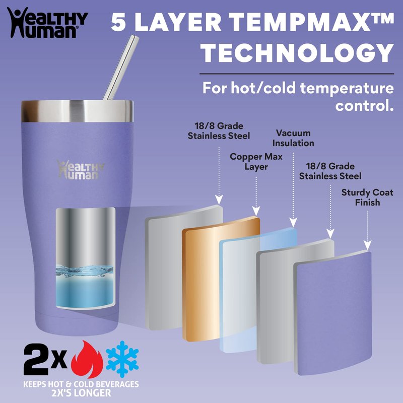 - KEEPS LIQUIDS COLD & HOT 2X LONGER: The Healthy Human Cruiser travel tumbler with lid and straw keeps your favorite beverages cold or hot two times longer than traditional mugs or plastic disposable cups.