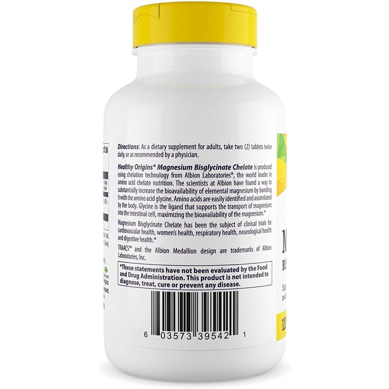 Healthy Origins Magnesium Bisglycinate Chelate (TRAACS) - Chelated Magnesium for Brain & Heart Health - Albion Magnesium Supplement - Unbuffered Supplements - 120 Tablets