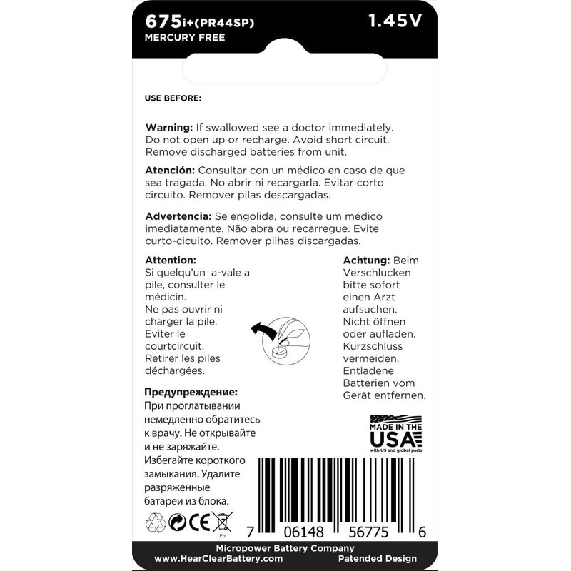 - HearClear Size 675p Cochlear Implant Hearing Aid Battery | 490 mAh | 4-year shelf life | High capacity | High power | Anti-leakage design