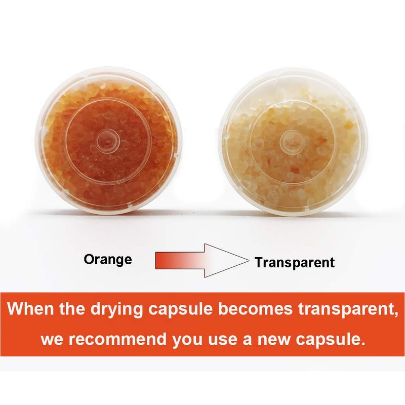 3. The color will turn from orange to transparent when it absorb the moisture.When the color becomes transparent you should change a new tablet.