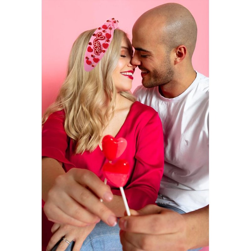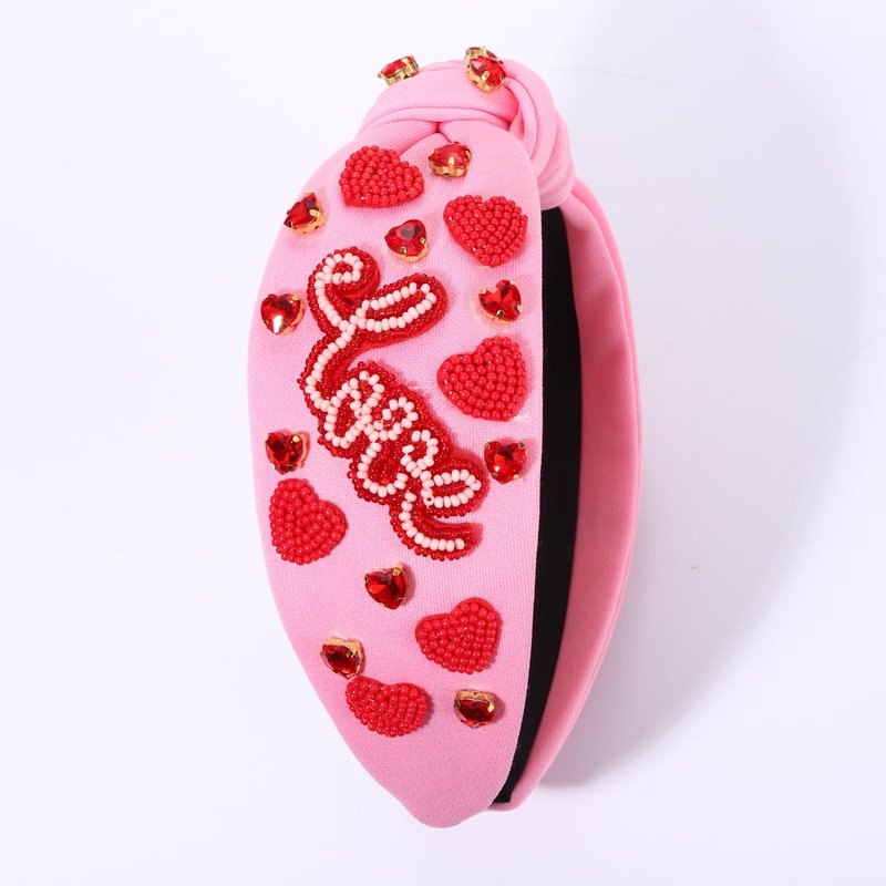 - Red Pink Heart Headbands:Celebrate the season of love in style with our pink Valentine's Day crystal headbands!Whether you're dressing up for a date night or simply want to make a statement,these lovely beaded heart headband are the perfect holiday accessory to showcase your love for the season.Super cute crystal heart knotted headband are perfect as Valentine's day or Galentine's day gifts,birthday or baby shower gifts,love party or a every day accessory.